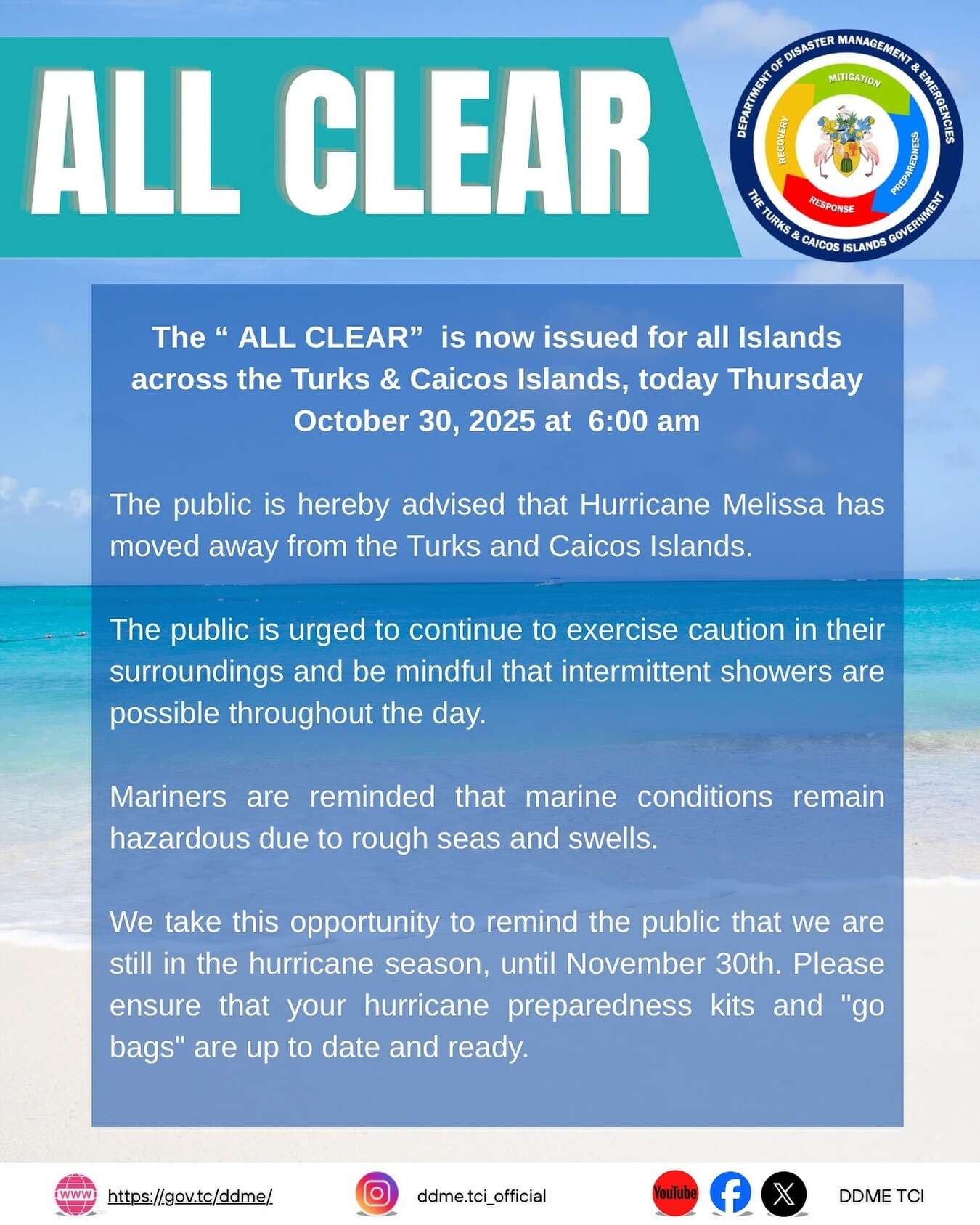 Thankfully, Hurricane Melissa has passed Turks and Caicos, our thoughts and prayers go to Jamaica and Cuba and all of those that have been affected by this hurricane